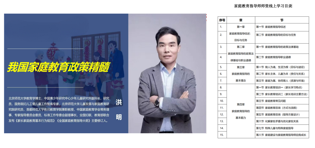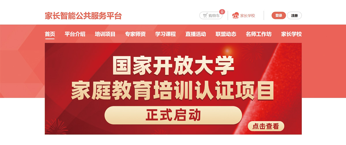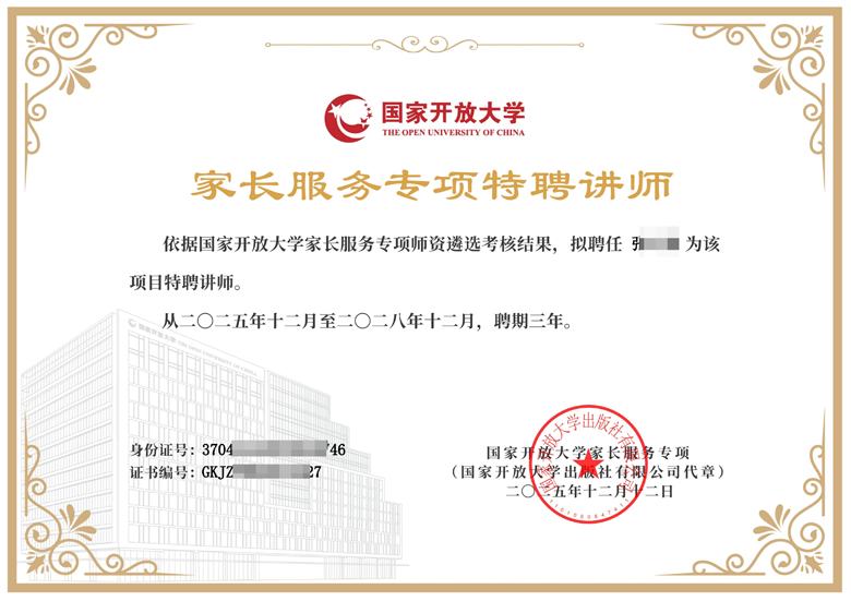 根据2025年1月20日国家开放大学发布的《关于开展家庭教育培训认证项目的公告》要求,由国家开放大学出版传媒集团联合中华文化促进会家庭教育工作委员会,面向全国遴选国家开放大学家庭教育培训认证项目师资,经审核、考评通过后,纳入“国家开放大学家庭教育服务人才储备库”进行统一管理。