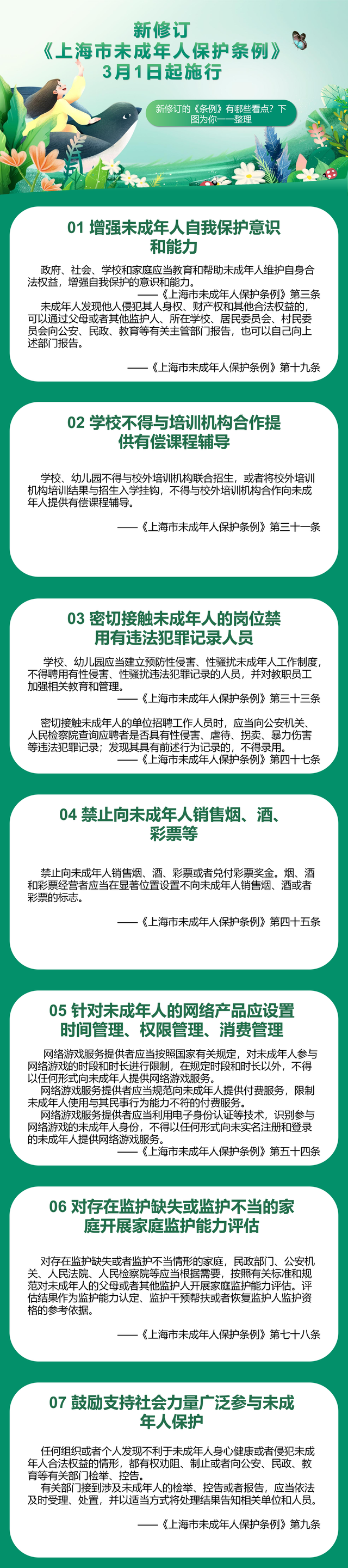 一图读懂 新修订《上海市未成年人保护条例》今起施行