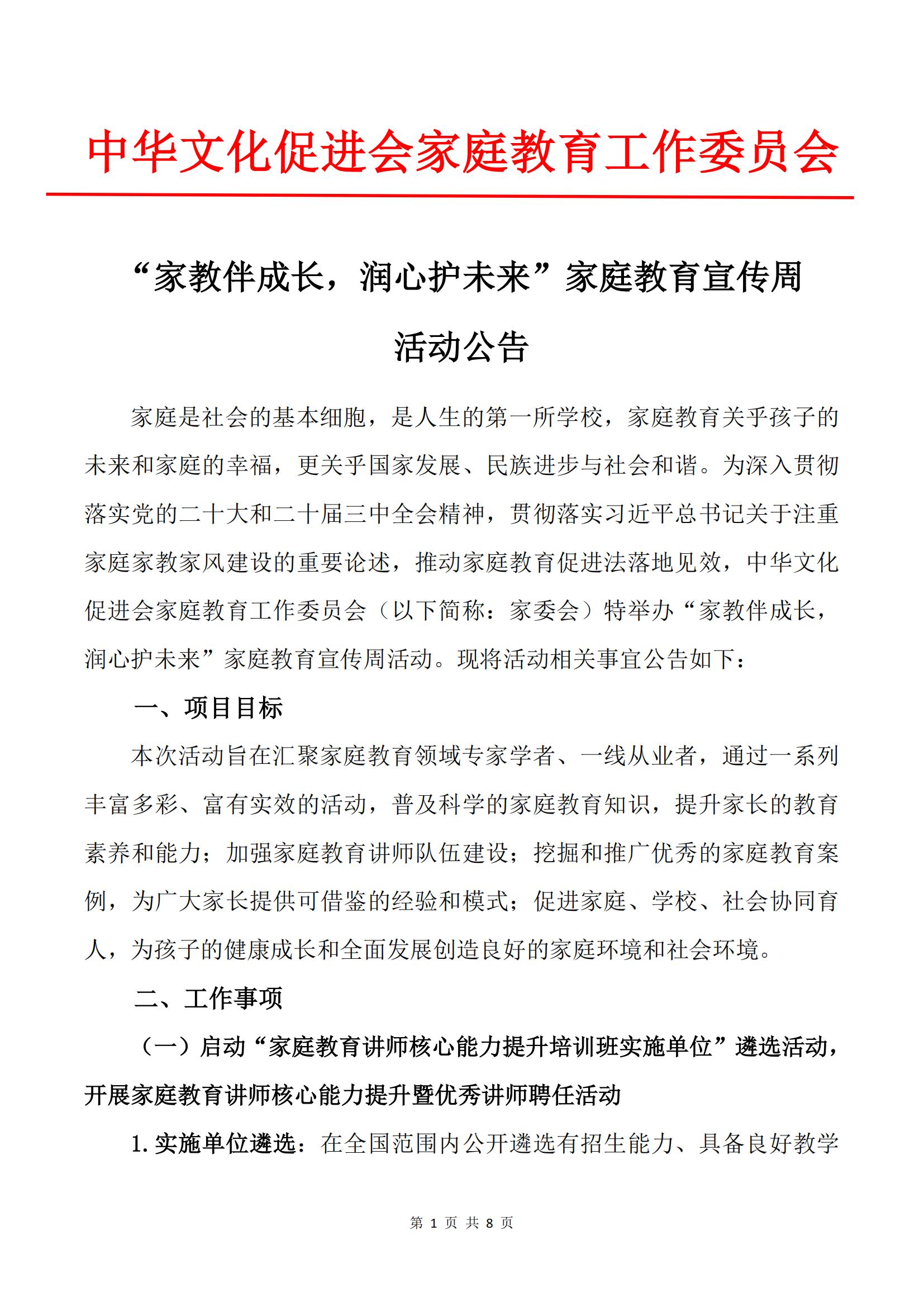 “家教伴成长,润心护未来”家庭教育宣传周活动公告