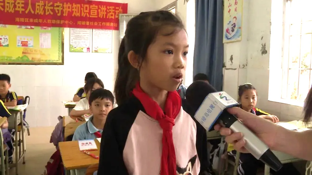 下朗小学学生 陈智涵:学到了不能欺凌同学,如果受到欺凌的话如何自救,通过这个课堂(讲座)我觉得非常开心,而且老师讲得也非常认真。