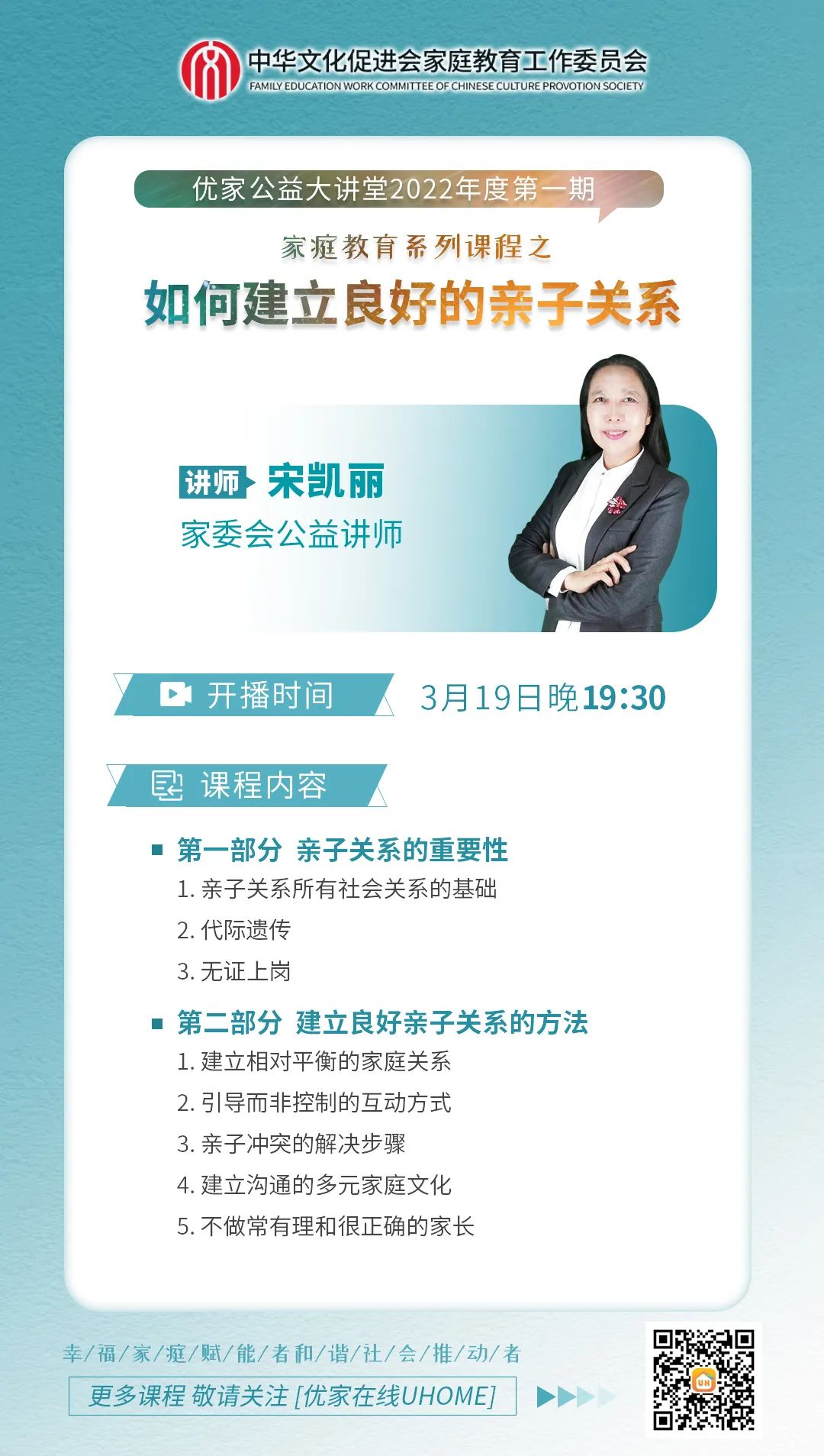 【优家公益大讲堂】开播预告:家庭教育公益宣讲课第一期3月19日晚19:30准时开讲!