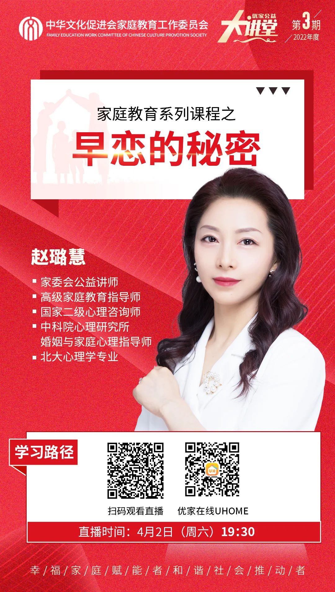 【优家公益大讲堂】开播预告:家庭教育公益宣讲课第三期4月2日晚19:30准时开讲!